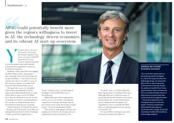 Andrea Guerzoni , EY Global Vice Chair – Strategy and Transactions , says CEOs are making bold investments in the technology to future-proof their organisations ,