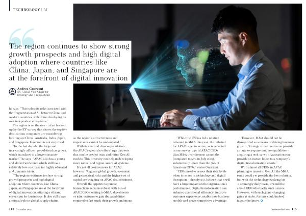 Andrea Guerzoni EY Global Vice Chair for Strategy and Transactions he says . “ This is despite risks associated with the ‘ fragmentation of AI ’ between China and western countries , with China developing its own independent ecosystems .”