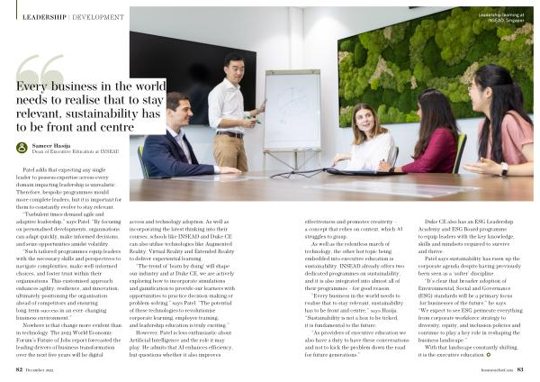 As well as the relentless march of technology , the other hot topic being embedded into executive education is sustainability . INSEAD already offers two dedicated programmes on sustainability , and it is also integrated into almost all of their programmes – for good reason .